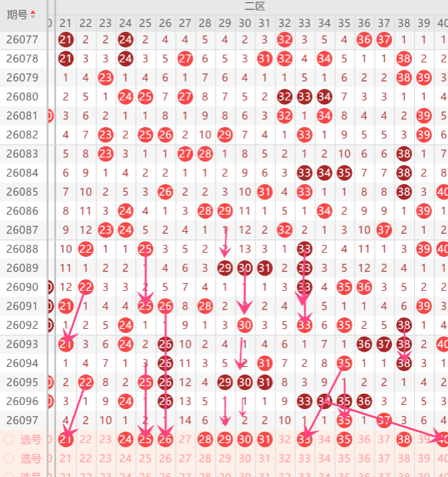 二区在近期区间的走势上分析,而且整个区间现在是一个温热形态,上期二区间开出了2码,而且整个区间上期开出的形态是重码和连号分边走势,上期小妹在文章中布局到了2码开出,那么本期二区间重点关注的形态是对称形态,空位回补,那么本期首先注意对称形态上的25.26.29.30.33.34.40中选择1-2码开出机会,而空位回补上的21.24.32.39中参考1-2码回补机会,上期重点关注在重码走势上布局到了1码开出,那么本期重点关注在隔期回补上布局一码订胆机会,如图所示.