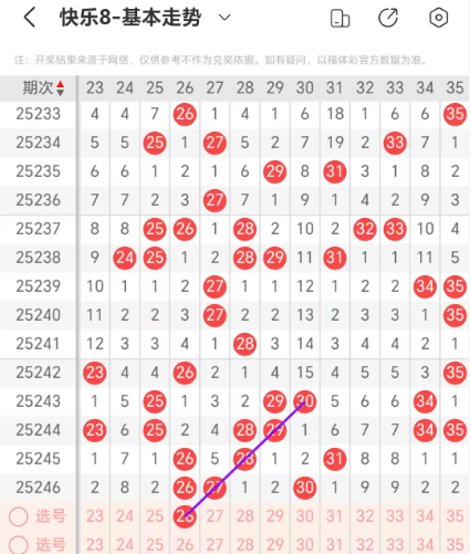 26码,如上图所示,与往期奖号27 28 29 30码形成一个斜5连,所以看好。