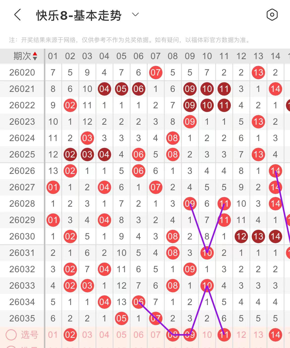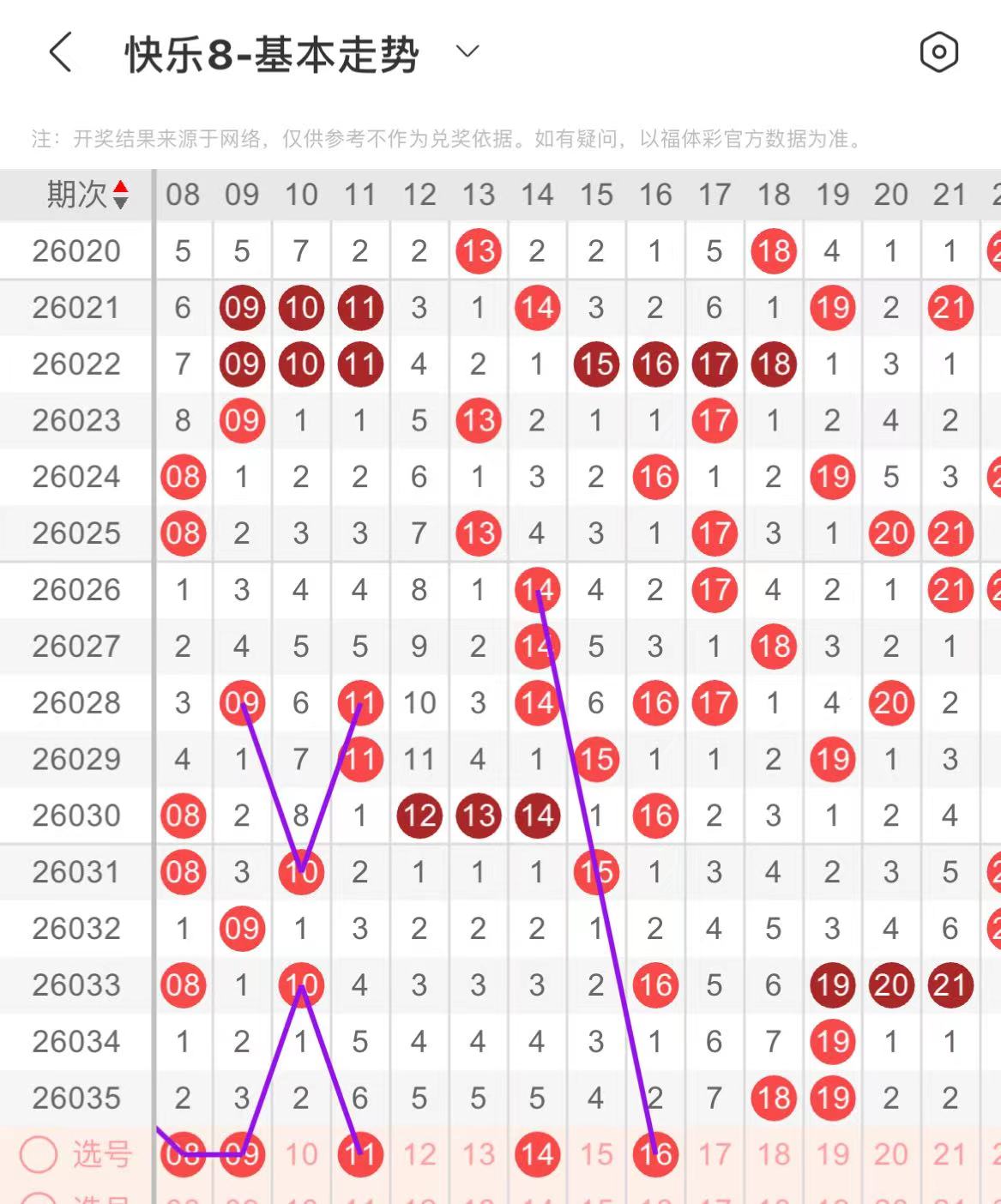 11-20区:本区间上期开出了两个号码,从号码走势图上看,该区号码在回暖,出号个数在三个号码左右,有出号走势的号码有11号,跟上面走势形态对应,16号,斜连出号走势,防14.16同出的可能。