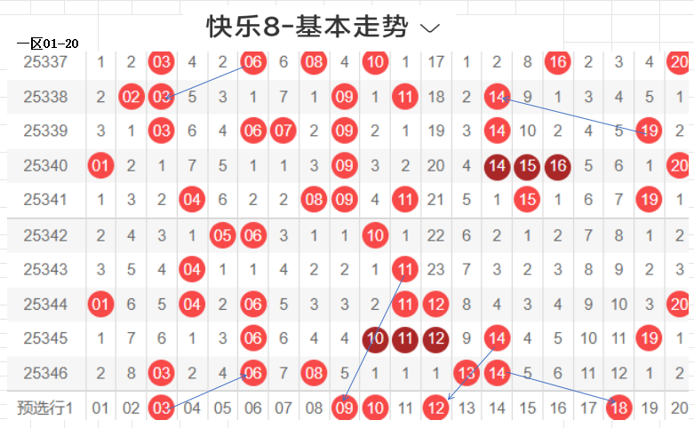 上期开奖数据解析,区间比5852,重码6个,5期以下开出不含重码10个,冷码开出1个,10期以上.尾数集中8尾,其他尾比例平均,奇偶比的区间很稳定.5期以下加重码达16个数,重点选码在5期以下,选码方式做出调整.以区间比,重码,尾数比,走势图为主要条件选码,先做出粗选,在总结.以此为据,推测347期.