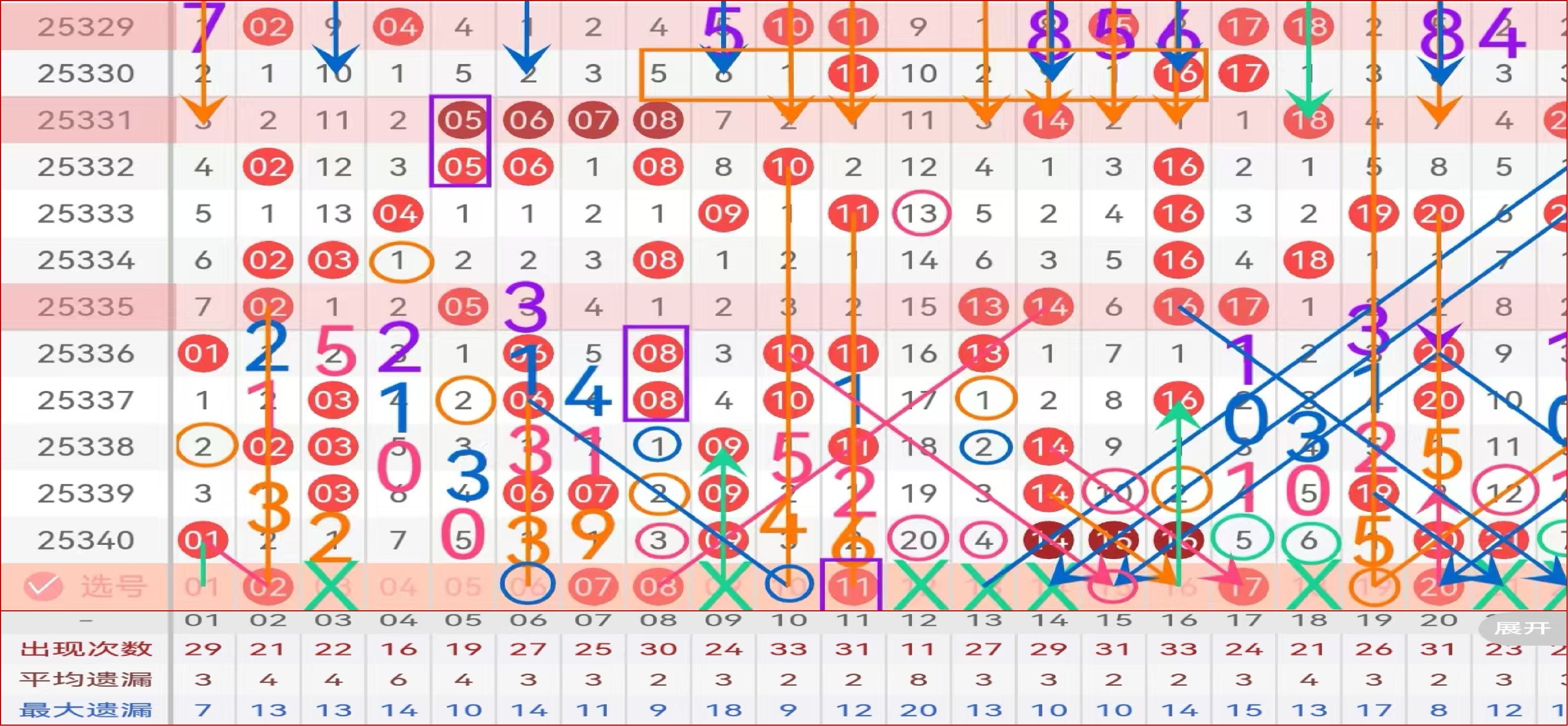 快乐八第25341期走势及数据属性分析,上期播间公推三复二中,圈子选二中四胆中三