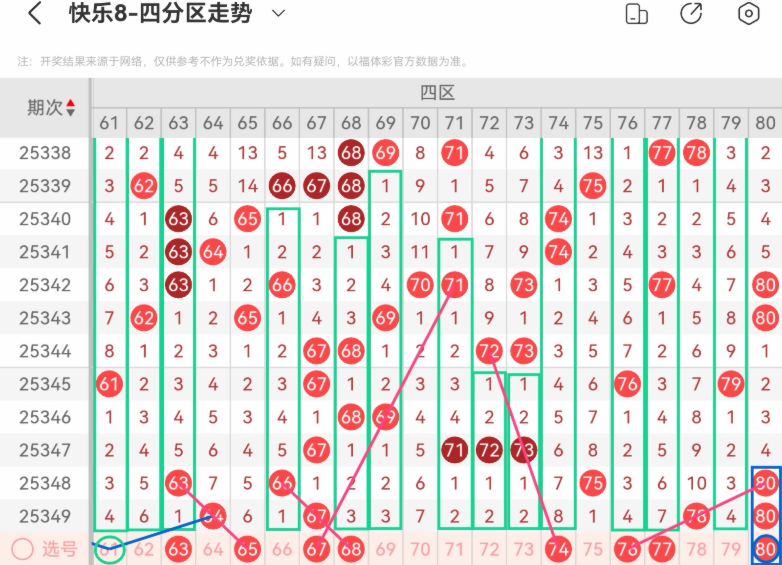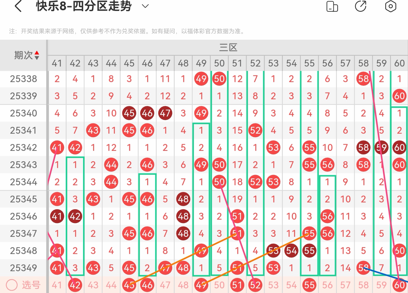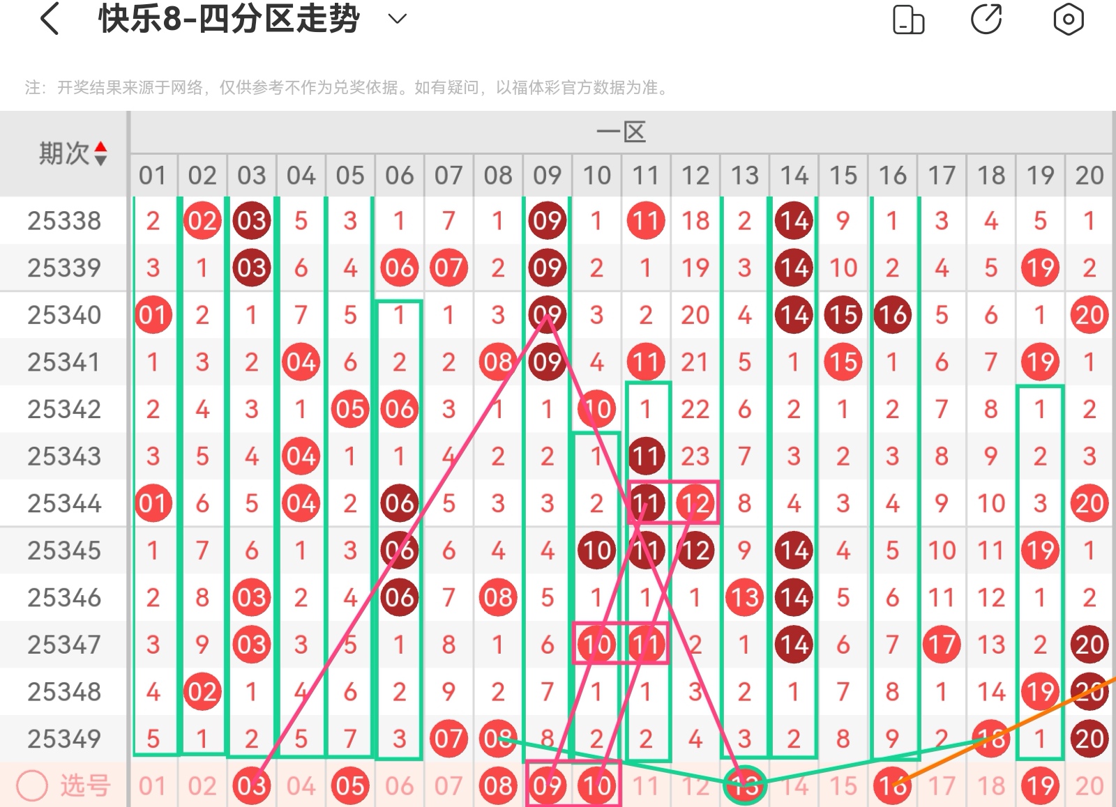 下面我为大家分享一下快乐八第25350基本走势分析:
