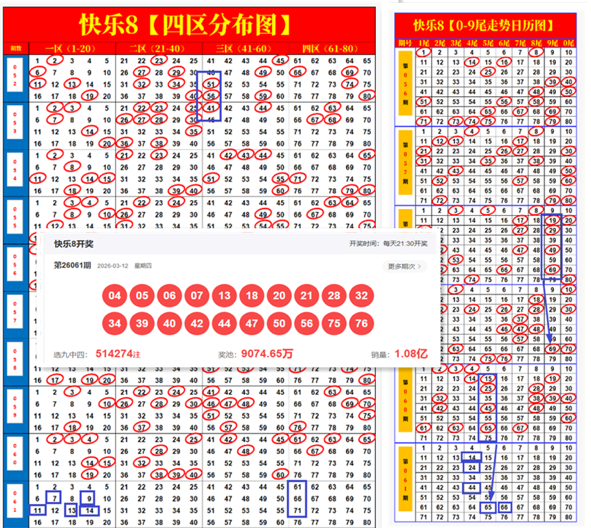 快乐8第2026062期尾号、四分区画线分析,用心做事,终会看到回报!