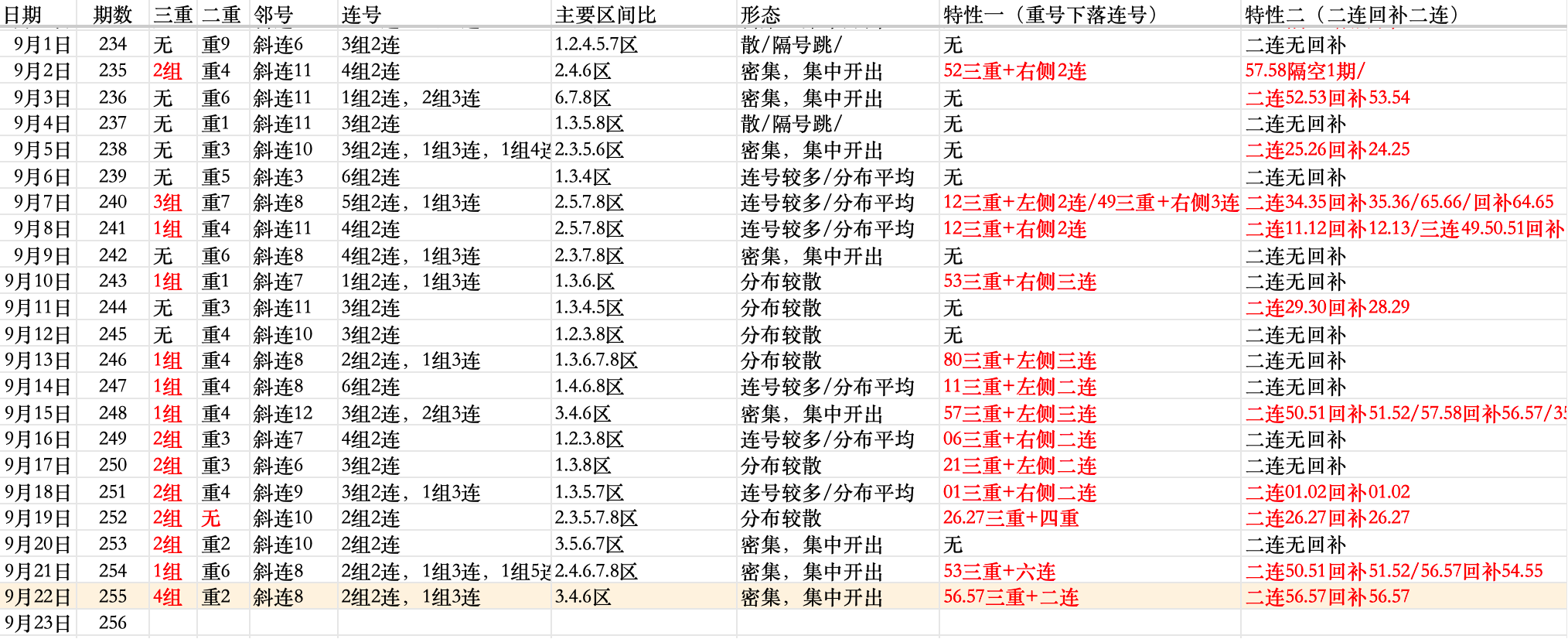 | 9月12日 | 25245 | 3 | 3 | 4 | 2 | 2 | 1 | 1 | 4 |