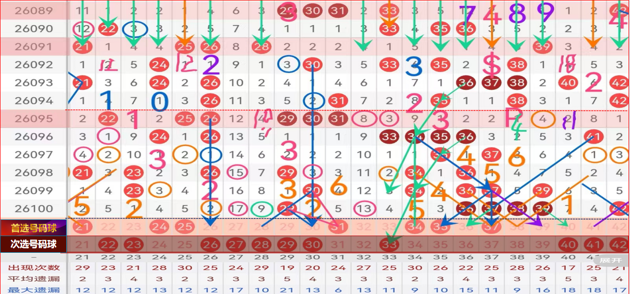 二区间推荐主做号码:21 24 25 31 34 35 37防守号码:32 36 38 39;