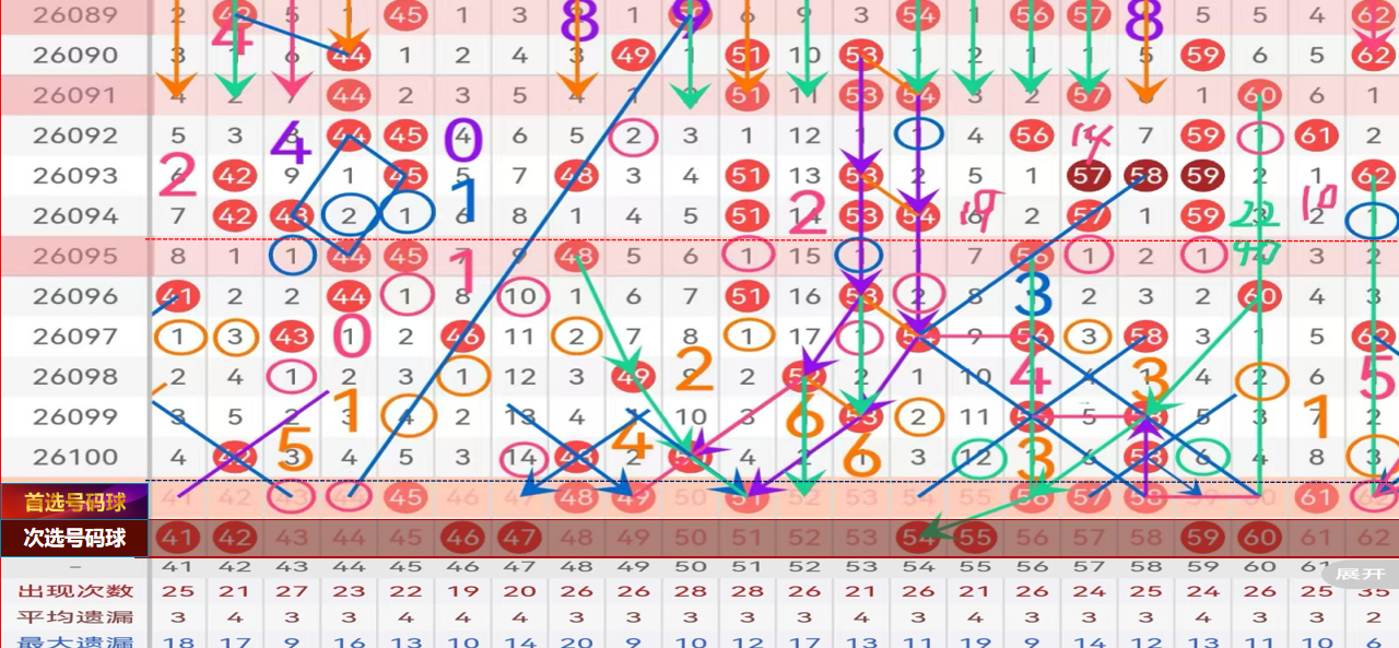 三区间推荐主做号码:45 48 49 51 56 57 58防守号码:43 44 52 53;