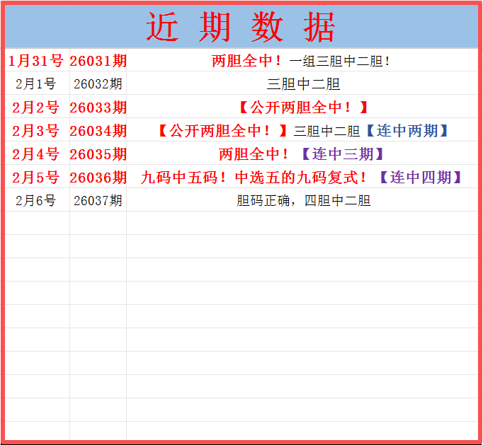 本期看好的五个尾号: