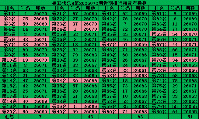 综上所述,福彩快乐8第2026073期推荐号码: