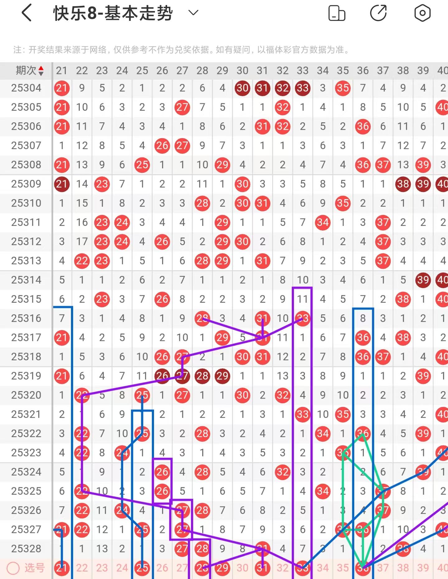 二区间上期大面积减少落号,一共开出四个号码球,本期考虑等同数量的号码球,注意隔期对称回补的21、25号码球,注意斜连走势回补的25号码球,阶梯落位重码走势注意25、28号码球,注意斜连走势回补的29号码球,防守31号码球的重落,期数和值加减法注意33、36号码球,同时36号码球也是近期相似形态号码,和斜连走势构成平行四边形形态号码,注意隔期对称回补的35、40号码球,因此二区间关注21-25-29-31-36。注意本区间的选二复式25-31-36。