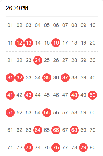 26038期命中10码 04,05,07,11,20,46,47,73,75,80