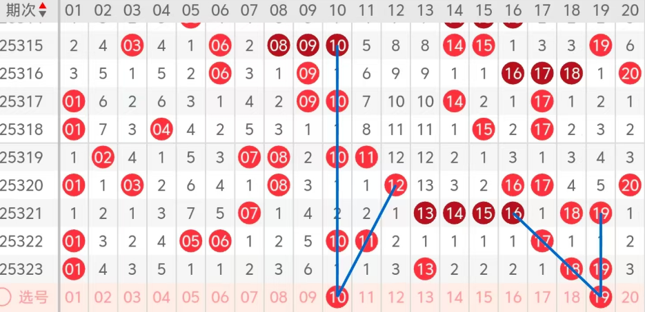 第一区间的走势分析:第一区间上期开出了四个号码球,主要的落号点位在一区间的后半区,走出了三奇一偶的形态走势,上期一区间的前半区落下了一个号码球,后半区落下了三个号码球,整个一区间处于走冷的趋势,根据一区间的走势规律,今天的一区间我们主看中间和凤尾处号码的落位,主看10 19这两个号码球的落位,10走出了热码隔一期回补的走势形态,也是斜连码的走势形态,19走出了重码的形态,也是斜顺连的走势,这两个号球都是热区间边码的落位,至少有一码落下,参考为主!