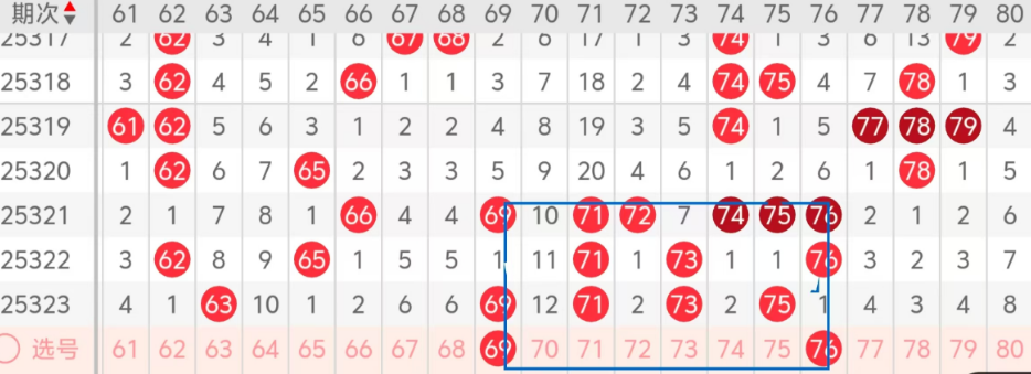 第四区间的走势分析:第四区间上期开出了五个号码球,主要的落号点位在四区间的后半区,走出了五奇的形态走势,上期四区间的前半区落下了个两号码球,后半区落下了三个号码球,整个四区间处于走热的趋势,根据四区间的走势规律,今天的四区间我们主看热区间段边码的落位,主看69 73这两个号码球的落位,69走出了个一期重码的落位走势形态,76走出了重码隔一期回补的走势形态,这两个号球走出了对称的形态走势,同落的机会很大,参考为主!