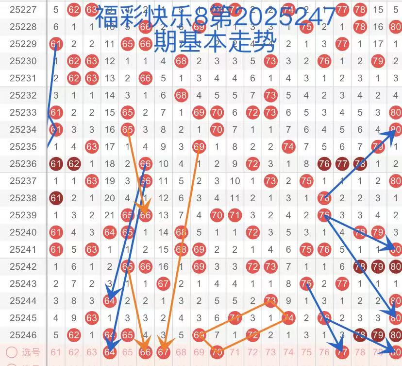 25247期福彩快乐8,走势综合分析(本期一胆参考80)