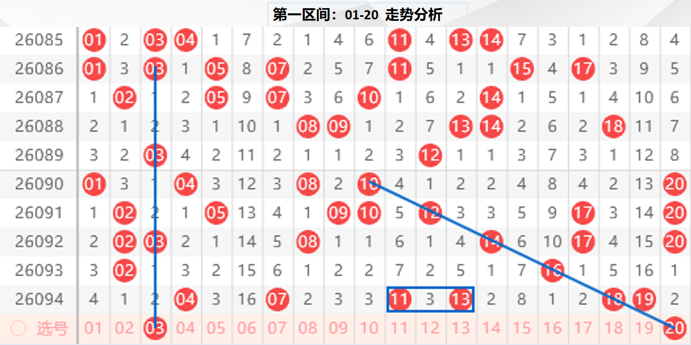 一区分析:【01-20】(走势图标注号码非小黄车大底,请谨慎参考,具体思路将在直播间分享讨论)