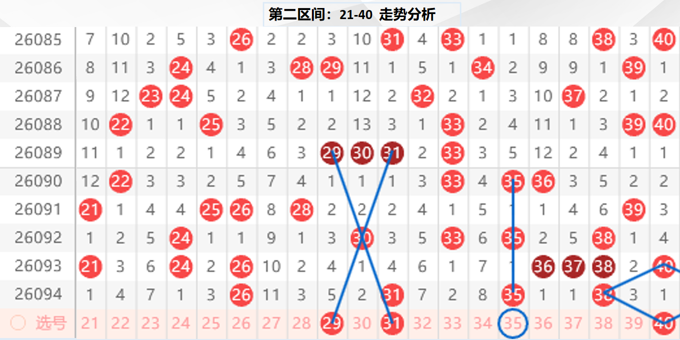二区分析:【21-40】(走势图标注号码非小黄车大底,请谨慎参考,具体思路将在直播间分享讨论)