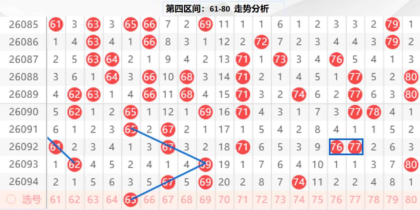 四区分析:【61-80】(走势图标注号码非小黄车大底,请谨慎参考,具体思路将在直播间分享讨论)