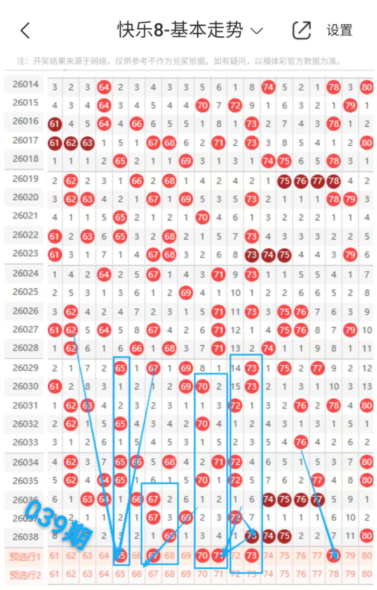 快乐八039期走势分析(本期机会不错+继续跟上吃肉)