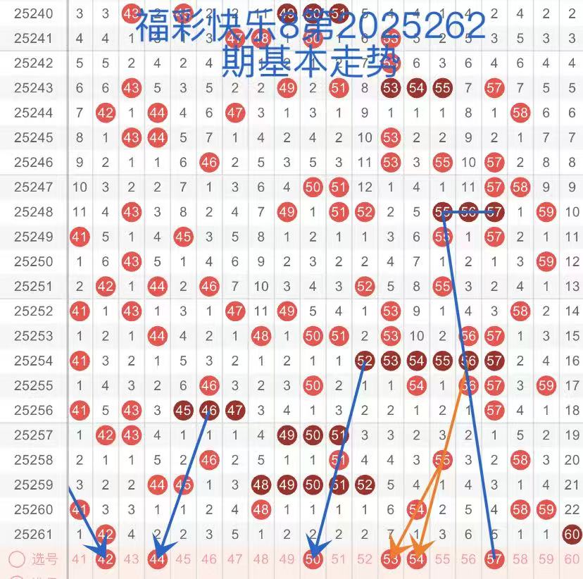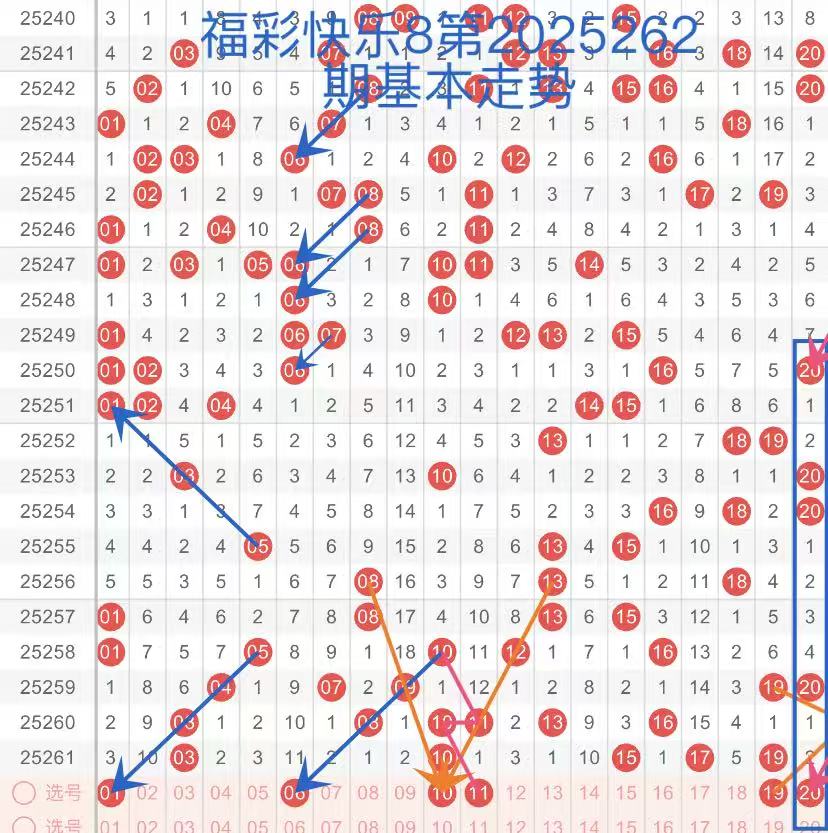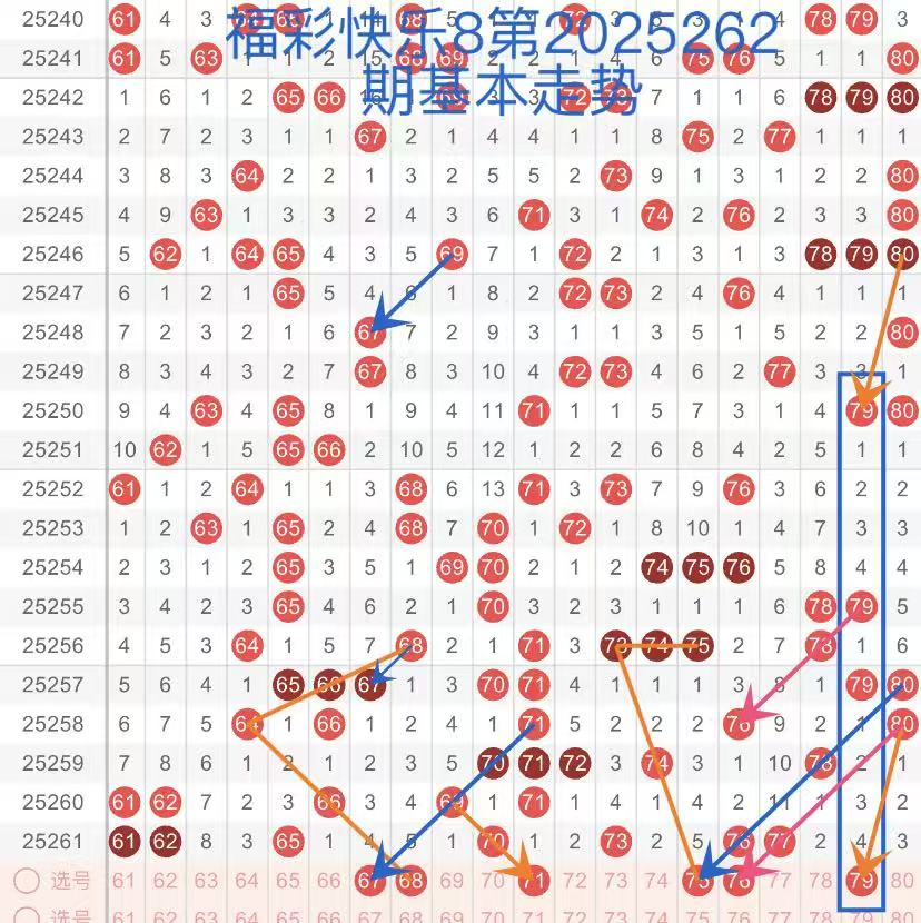 下面是我对2025262期福彩快乐8的分析和预判,希望通过我的分析能让大家今晚大满贯!福彩快乐8上期开奖号码如下图