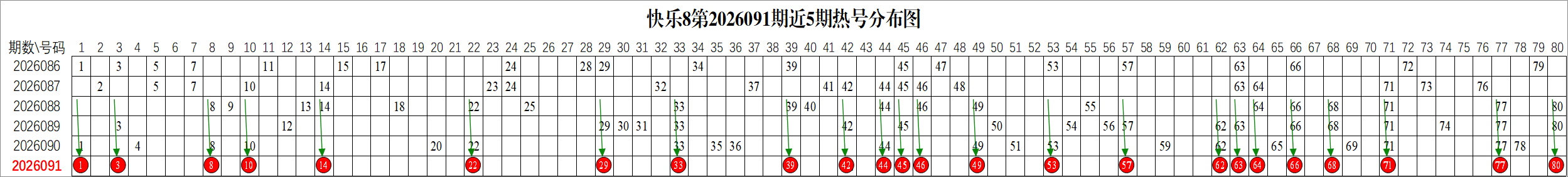 以2026089期福彩快乐8号码为例: