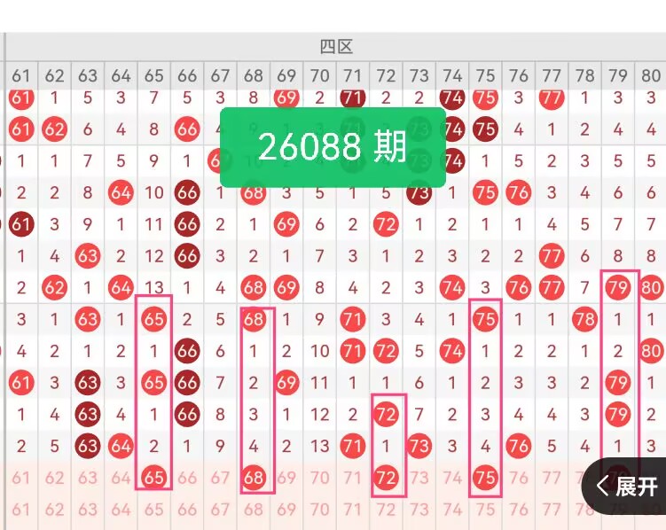 上期第四区间开奖5个号码,本期可能会稳定开出。65为63、64的邻号,上期开出63-64连号后,邻号65补位趋势明显,处于区间前端,衔接三区与四区。68属于区间中段偶数,历史走势稳定,近几期处于温和遗漏,符合四区高频出号下的温号补位规律。72是71、73的邻号,上期开出71、73后,邻号72回补概率提升,填补71-73之间空白,维持中段热度。75为区间奇数,与72形成奇偶搭配,处于72-79之间的过渡位置,近期活跃度稳定,衔接中段与后端。79处于区间后端,近几期偶有开出,作为尾号补位,平衡四区前后段分布。
