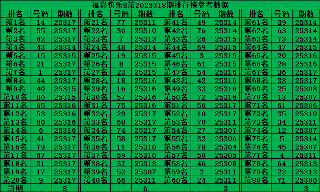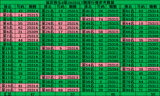 截至2025317期最大遗漏的号码是17期的71号,提取最近17期的数据做为2025318期的参考数据: