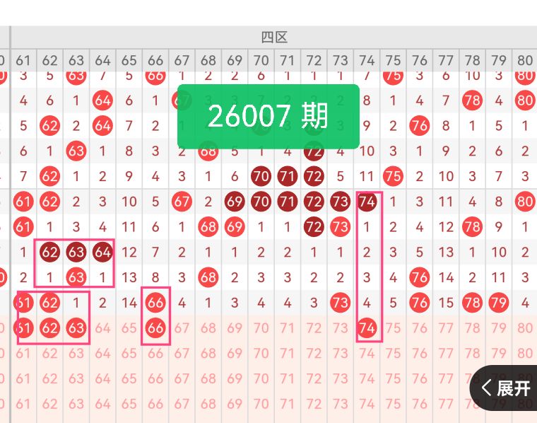 第四区间号码推荐:【61 62 63 66 74】