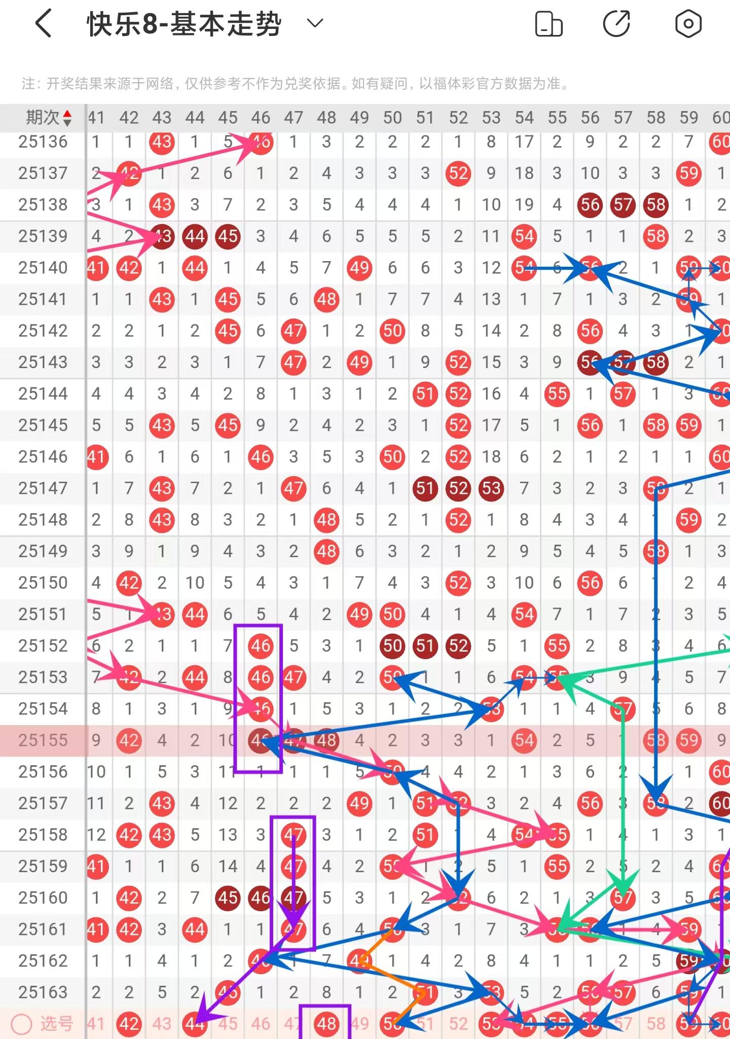 三区间上期小面积增加落号,一共开出六个号码球,本期考虑等同数量的号码球,阶梯落位重码走势注意关注48、59号码球,以二区间的38号码球为对称走势起点,注意走势形态的53、56号码球,防守菱形形态的43号码球,注意直连转斜连的走势,本期注意44号码球,期数增减法注意48、52号码球,以52号码球为对称走势起点,注意走势形态的50、54、55号码球,以58号码球为对称走势起点,注意走势形态的54、56、59、60号码球,注意阶梯落位连码走势的56、57号码球,注意59、60、61号码球的走势形态,注意本期的59号码球。因此三区间关注42-44-48-50-52-53-54-55-56-59。