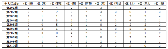 近十期走出4-2-1-3-5-1-0-2-1-1,根据我上面对此区的定义得知本区同等规律浮动。