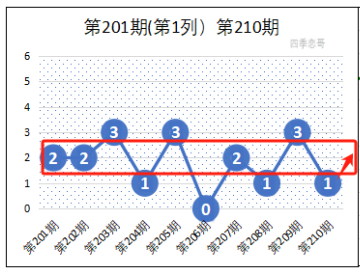 近十期走出了1-2-1-3-0-3-3-1-2-2走势