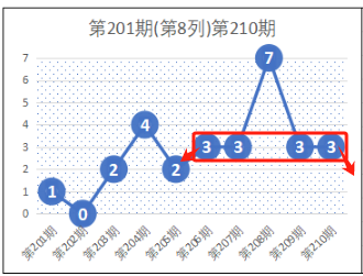 近十期走出1-0-2-4-2-3-3-7-3-3走势,根据我对本区的定义要顺水势而为。