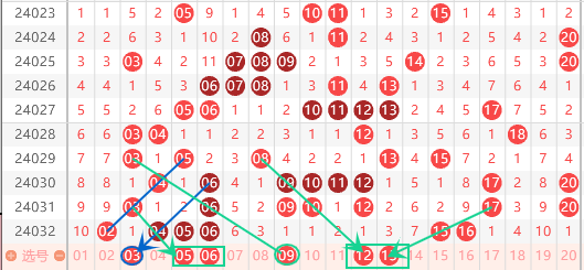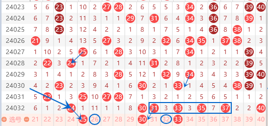 上期该区间开出热开,龙头位以边码24形态下落,形成小规律码态势,并携带大等距横连及连号组合完成该区域的主要布局形态;本期在布局上看好奇数回补形态,可搭配冷码26形成连号二码联动做为该区域的龙头组组合形态;21 23两码有下落走势形态也可布局防守一注;21 23 25的等距横连组合形态,中段热开区域,导致规律属性码颇多,因此在布局上面需要慎重,建议在做号选择上面 32 34 36选择一码进行重点关注,以搭配组合为该区域的布防;