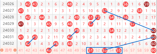 该区域上期开出中41 43中隔位码42打头行成对称形态,并搭配冷号重码完成该区域整体布局;本期在布局上面,该区域重点关注重码回补落位;41 46 48 60等于1到2码;冷号段48 60区域的布局选择上,我们可以参照二区间进行布局防守,落位码形态选择上建议搭配冷号50 55下落,且夹带着等距横连码形成冷态段的总体布局;