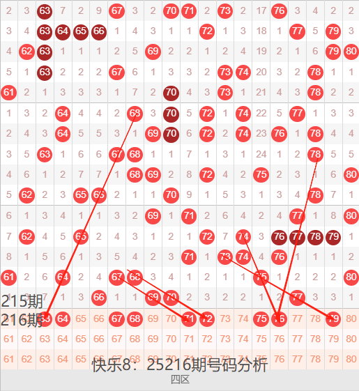 回顾25215期开奖号码:05 09 12 24 25 30 31 33 3442 45 47 51 52 55 57 66 69 70 77 ,最近一段时间号码爆区几率特别高,目前已经连续多次出现爆区热开的情况,爆区之后基本上都是迅速回调,转换至其他区间继续暴热,大家若是能抓准区间,或许有很大的机会,但是号码的变盘规律是非常的快,很难把握,个人建议谨慎选择,不要 盲目的去操作~~