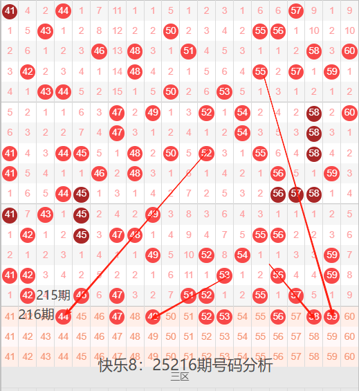 三区间41-60号码球走势,如下图: