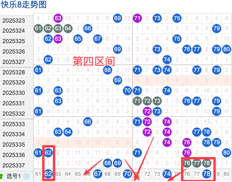 上期四区间开出了5奖号(68.69.76.77.78)上期的四区开5个奖号呈现了一个不变的趋势,开出的奖号7头回补3个,6头回补两个,先来看号码62在近 30 期内属于还是很稳定的号码,近期出现频率相对也是稳定的,偶尔会间隔多期后出现一次,这个号码要注意防守,号码67具有一定的间歇性活跃度较冷比如有时会间隔 7到10期就再次出现,也有时会间隔多期,近期整体出现频率比较冷,近期还是要关注的.号码74活跃度近期比较热,有一定的间歇性。活跃度近期较热,整体走势有一定的波动性.