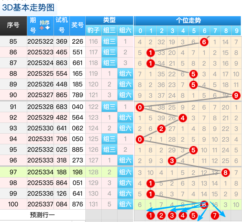 上期的3D个位开6号球,上期开出的是组六按照形态的话本期打组六形态小防组三,上期的6号球的落位是个位上的一个冷码的落位趋势,本期先来看1号球在个位还是有机会继续走出小号落位点这里要注意是一个热码的落位点,5号球和7号球是这里的落位点是两个分边号码的落位点这里注意防守一码就好了也是这里的两码走势都是非常好看的注意选择一码,再看9号球这里注意走出冷回补的概率。