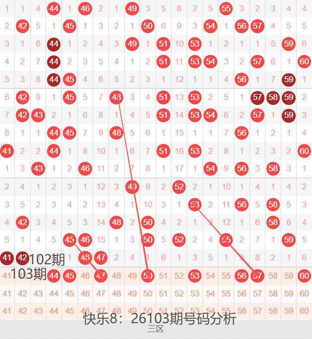 三区间41-60号码球走势,如下图: