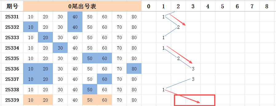 本期看好号码开出的范围是两码走势至四码走势之间。上期两个尾号开出了多码走势,八尾和九尾均开出五码走势,可惜都是今年的冷尾。我依旧看好的是今年的热尾,大家也可以转变一下思路,选择今年的冷尾,可以考虑冷尾进行回补。