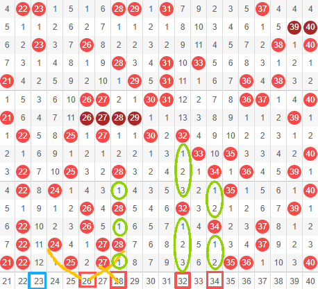 28: 28在近15期内开出6次,前面三个号是隔两期开一次,后面三个号是隔一期开一次,本期追热号的小伙伴28可以无脑追。