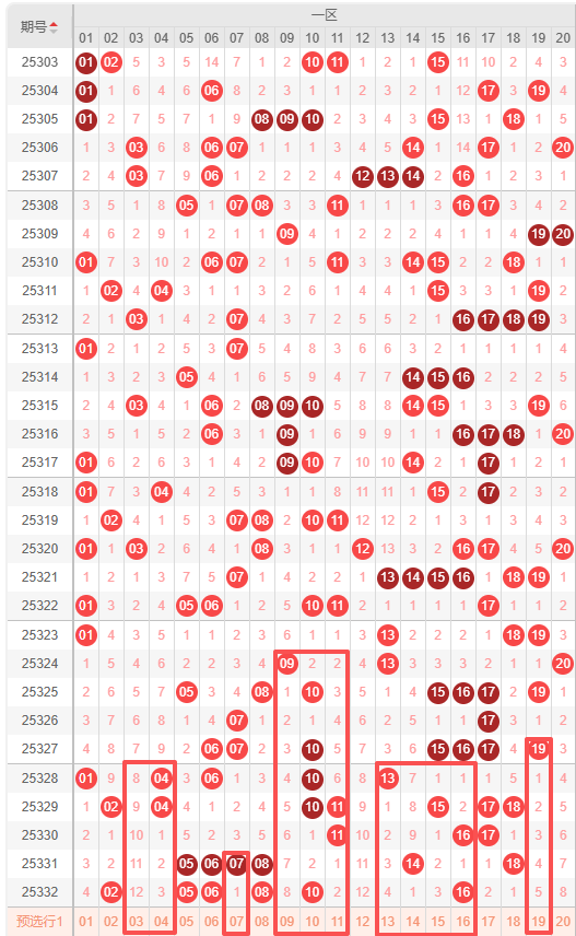 一区:最近一区10期出号情况为:4 3 7 2 7 5 7 3 6 6,总出号情况为50个,平均出号5个,本期推荐一区号码回补推荐出号为:03 04 07 09 10 11 13 14 15 16 19。重点关注:03 04 07 09 13 14 19。