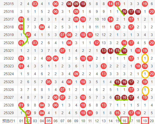 19:19还是很热的,如图,中间几期每隔一期都开,上期开出邻号18,本期推荐右斜连号19.
