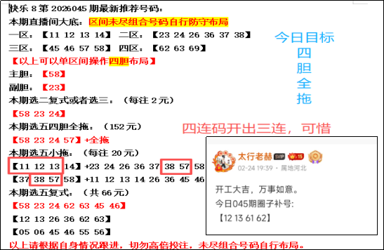 太行老赫快乐8第2026046期走势分析:全力冲击四胆拖