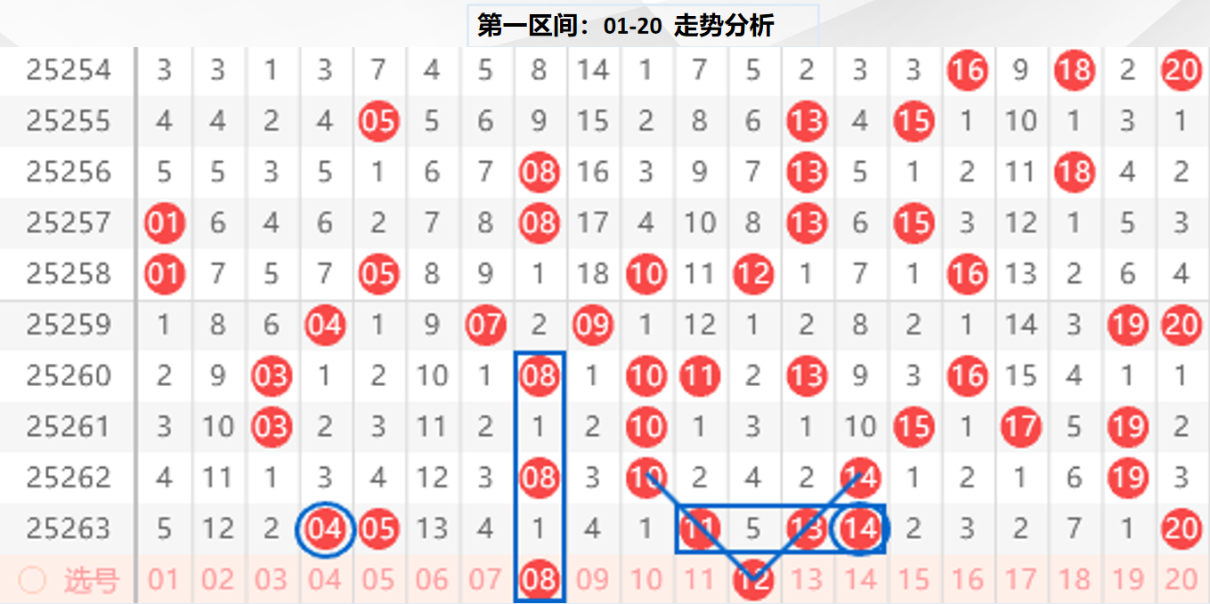 一区分析:【01-20】(走势图标注号码非小黄车大底,请谨慎参考,具体思路将在直播间分享讨论)