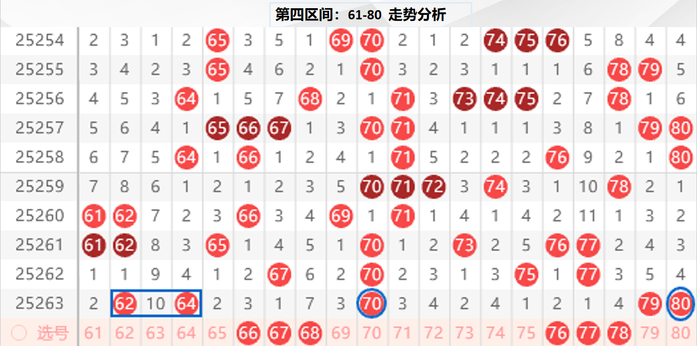 四区分析:【61-80】(走势图标注号码非小黄车大底,请谨慎参考,具体思路将在直播间分享讨论)