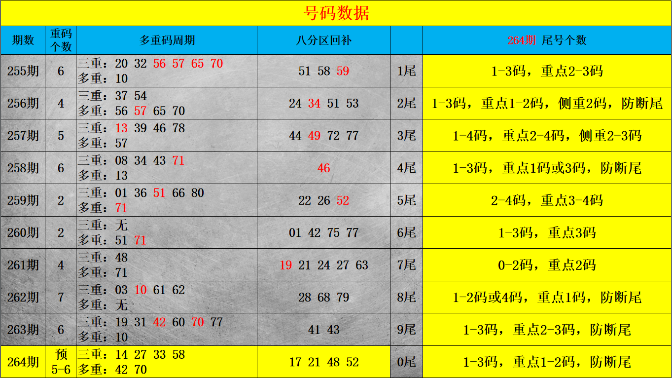 上期四区开号中也是保持着区间的重码不中断,且在同尾出现后又一次放空,区间在近期的同尾出号表现上比较弱势,但在隔期也都是开出了回补,从区间当前的两个机会中判断重点,首先在重码形态上还是要注意选择,尤其在62 64的同形态下方也要关注回补出号的重点。而在同尾70 80再次出现后以区间当前出号模式,本期也要防守可能再次出现放空的可能,但从机会中以出号形态判断,分边中还是有可能回补形态,本期在69 71 79三码中可考虑择一的布局选择。而在前期的67 77同尾放空的回补中可重点考虑空位的小周期重点,其中在66 67 76 77四码中关注一码的回补选择,出号的机会上还是非常大的。
