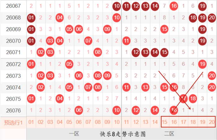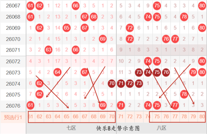 快乐8第26077期:冷热区间判断及号码分布推荐分析