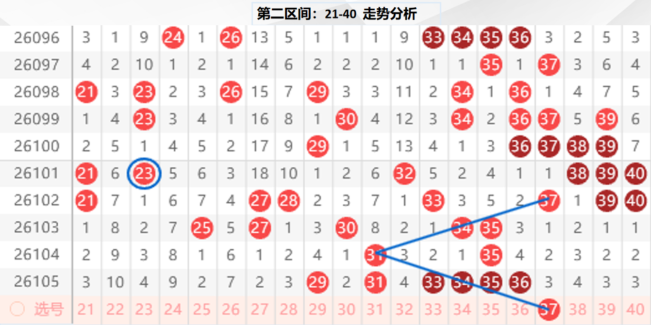 二区分析:【21-40】(走势图标注号码非小黄车大底,请谨慎参考,具体思路将在直播间分享讨论)