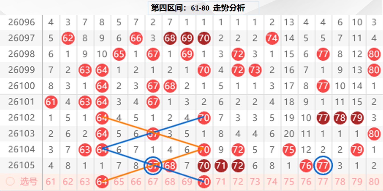 四区分析:【61-80】(走势图标注号码非小黄车大底,请谨慎参考,具体思路将在直播间分享讨论)