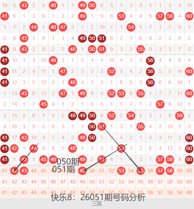 三区间41-60号码球走势,如下图: