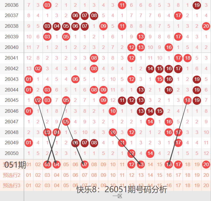 快乐8:26051期号码走势分析(开工大吉)